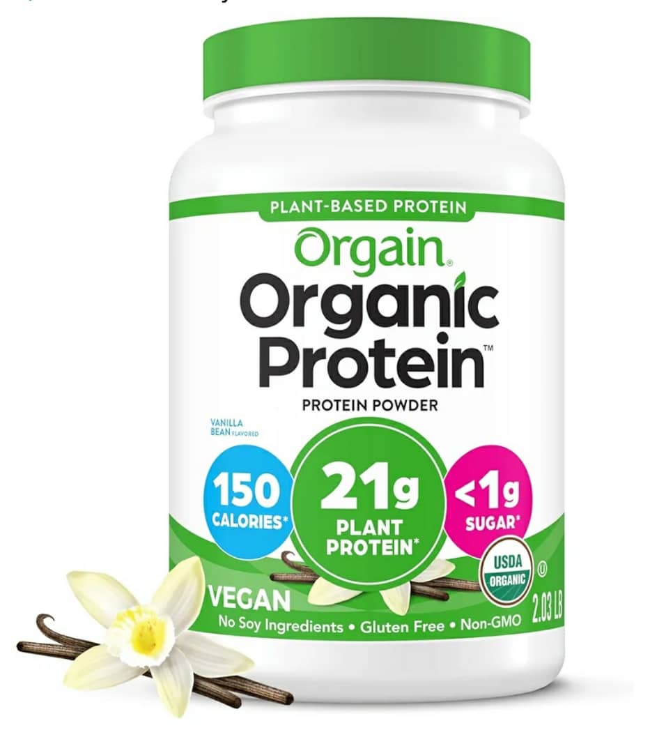 (21g)Fuel your day with the delicious, plant-based power of Orgain Organic Vegan Protein Powder in Vanilla Bean flavor. Packed with 21 grams of high-quality plant-based protein per serving, this smooth and creamy powder is perfect for supporting your active lifestyle and overall wellness. Enriched with 4 grams of prebiotics, it promotes a healthy digestive system, while being free from lactose and artificial additives. Made with organic, vegan ingredients, it’s the clean and nutritious choice for anyone seeking a tasty, dairy-free protein boost. Enjoy it blended into smoothies, oatmeal, or simply mixed with your favorite beverage for a satisfying and nourishing treat.