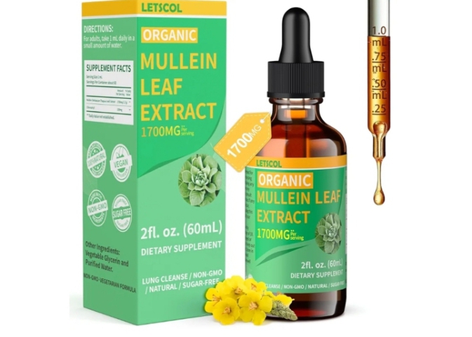 Letscol Organic Mullein Leaf Extract is a natural supplement made from organic mullein leaves, traditionally used to support respiratory health, soothe coughs, and promote lung wellness. Always check the product label for specific claims and consult with a healthcare professional before use.